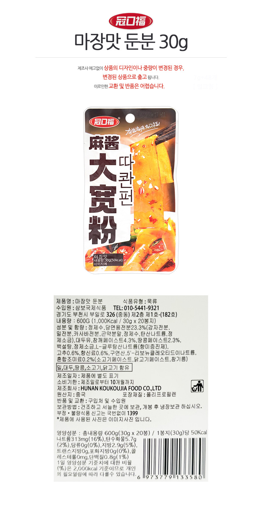 > 둔분 따콴펀 즉석당면 마장맛 50g x 20