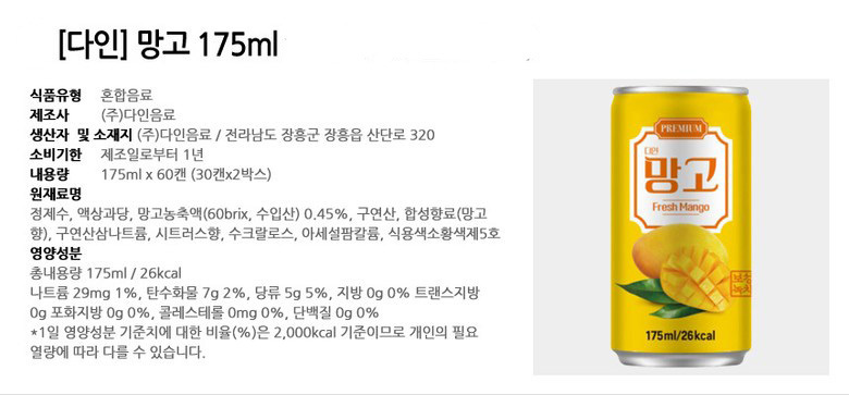 > 다인 망고 175ml x 30