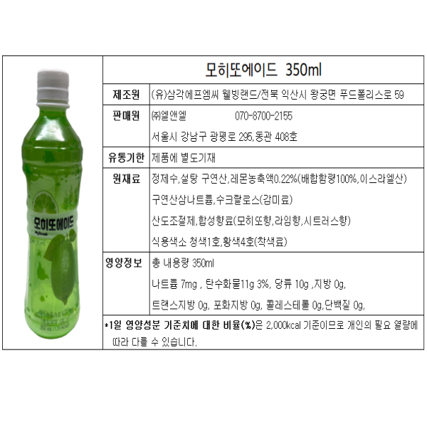 엘앤엘 모히또에이드 350ml 10입