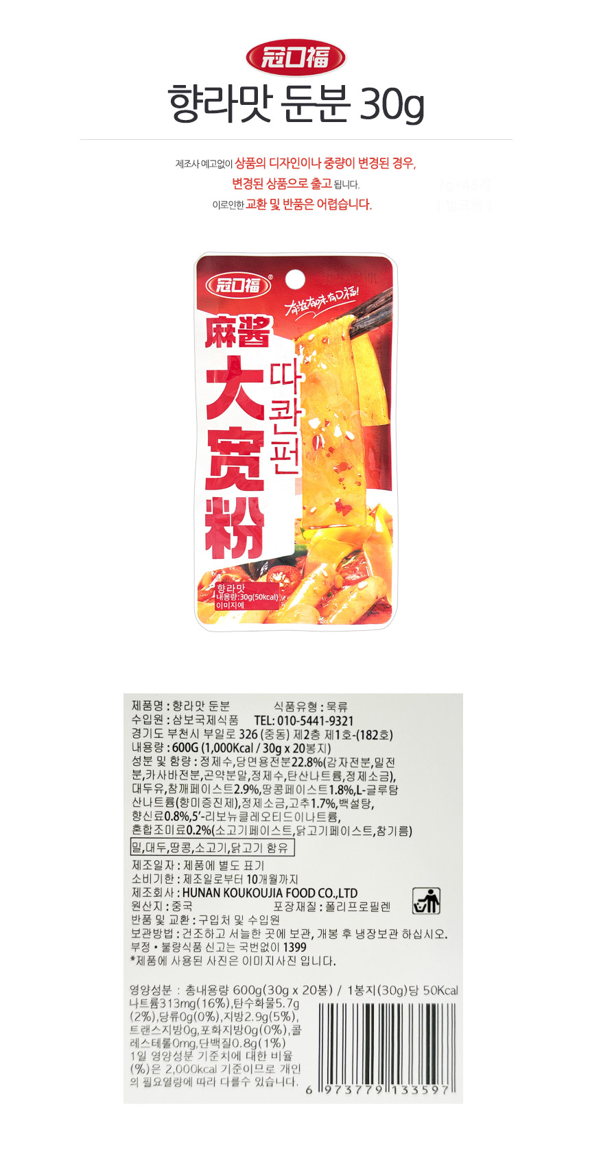 둔분 따콴펀 즉석당면 향라맛 50g x 20